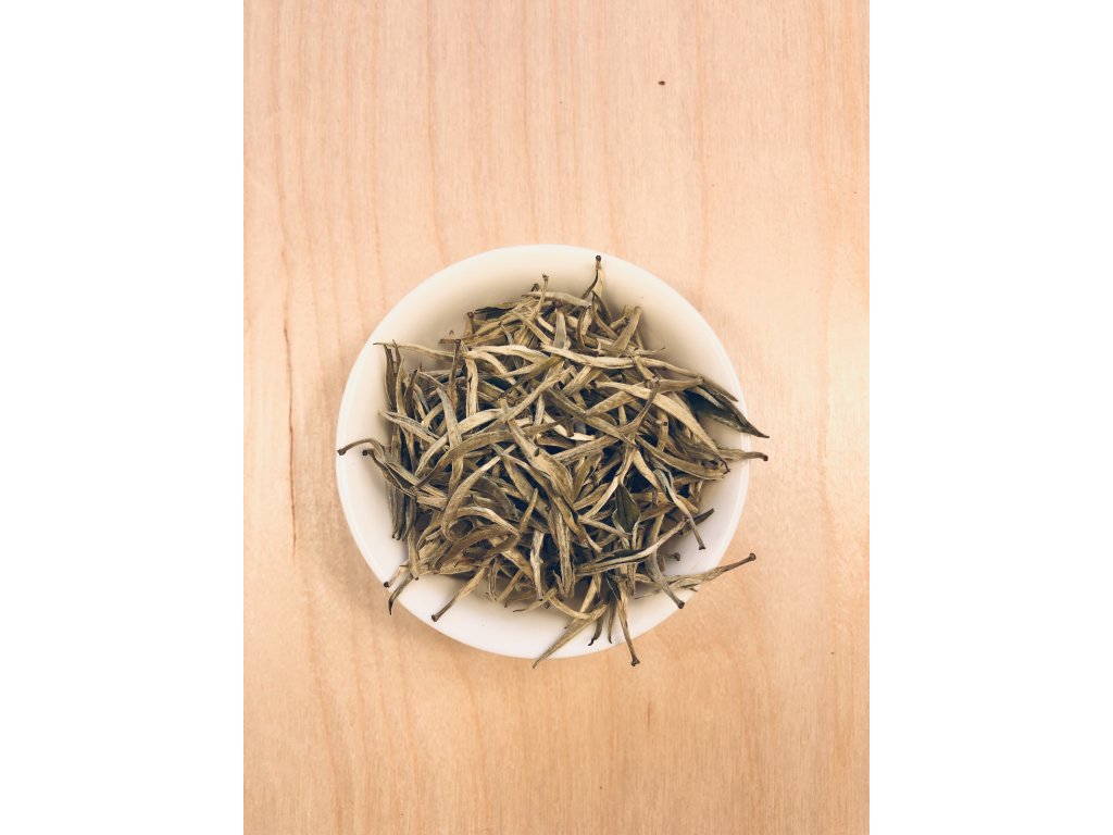 Jde o vzácný bílý čaj složený pouze z nerozvinutých prvních lístků (tipsů). Je jemné květnaté chuti, která je podkreslena čerstvou travnatostí. Nálevy jsou čiré světlé barvy s příjemnou vůní jarní louky. Suchý list se vyznačuje krásou svých jehliček. Po zalití přichází prvně jemné květinové vůně, která v dalších nálevech hutní.